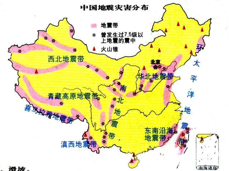 对于李四光预测的四大地震并不是指具体的城市,而是说的是地震带,它们是: