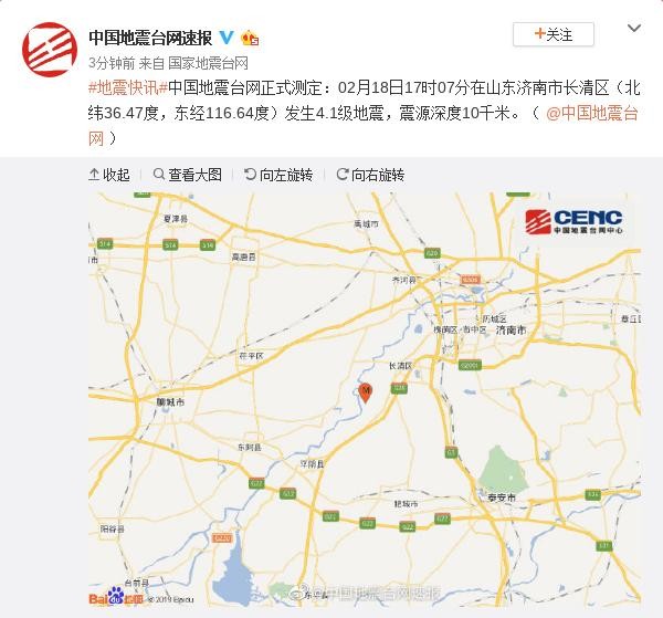 山东位于的郯庐地震带,地震的频率也是比较频繁的。进入2020年,山东济南长清区(北纬36.47度,东经116.64度)发生4.1级地震,震源深度10千米。这次地震震感非常明显。