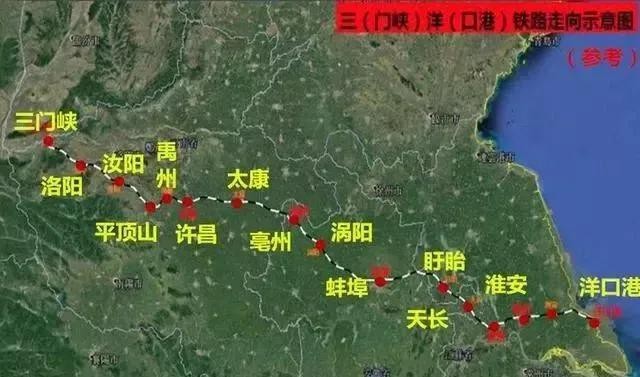 三洋铁路是江苏、安徽、河南共建一条东西向的普速铁路,全长1200公里 起于河南省三门峡市,终于江苏省南通市如东洋口港,实现了我国中东部地区3省14个地级市的连接,覆盖近8500万人口,是一条重要的客货物运输铁路。其战略地位不低于陇海铁路。