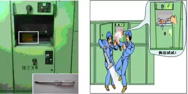在检修过程中,运行班长巡视开关室,发现该升压泵开关仍在“运行”位,擅自取下标示牌,试图拉开关至“检修”位。在拉开关时按动了“合闸”按钮,开关合闸,已解体的升压泵启动,4名检修人员急忙躲闪,险造成重大人身伤害。