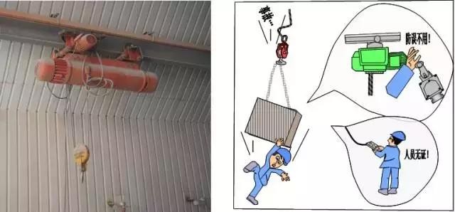 某钢厂非起重作业人员操作未经检验的电葫芦,并擅自拆除其上升限位,导致钢丝绳过卷扬拉断,吊物坠落,砸死一名途经人员。