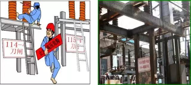 某年1月30日下午,某钢厂进行110kV 4母线清扫、115开关换油工作。电气主任擅自扩大工作范围,决定清扫115--4刀闸,不仅未办理工作票,而且错将梯子移至带电的114-4刀闸处,同时摘掉114-4刀闸处的“止步,高压危险”警示牌。检修工到现场后,也未核对刀闸的编号,登上带电刀闸,电弧烧伤致死。