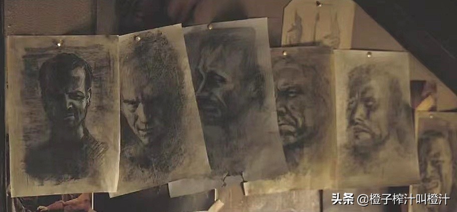 汉尼拔凭记忆画下脑海里那6个强盗的模样,他给自己强推了一针催眠混合剂来迫使自己找到剩下的记忆。