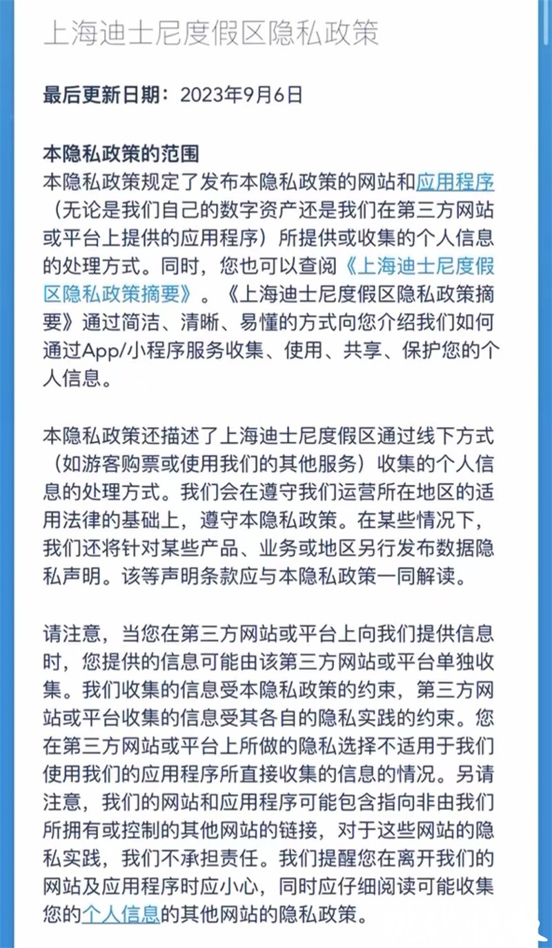 △上海迪士尼度假区隐私政策截图