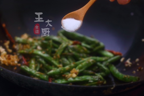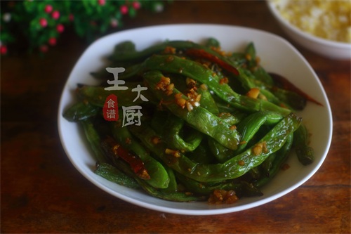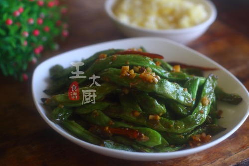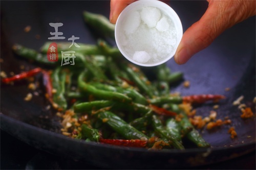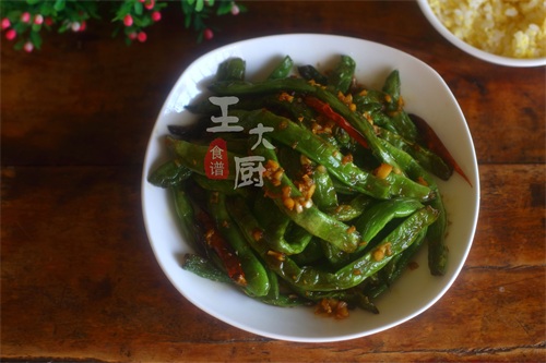 准备食材:豆角、蒜末、姜末、干辣椒、白糖等。