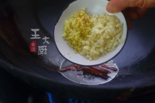 3、再将准备好的蒜末、姜末放在锅中,进行爆香。