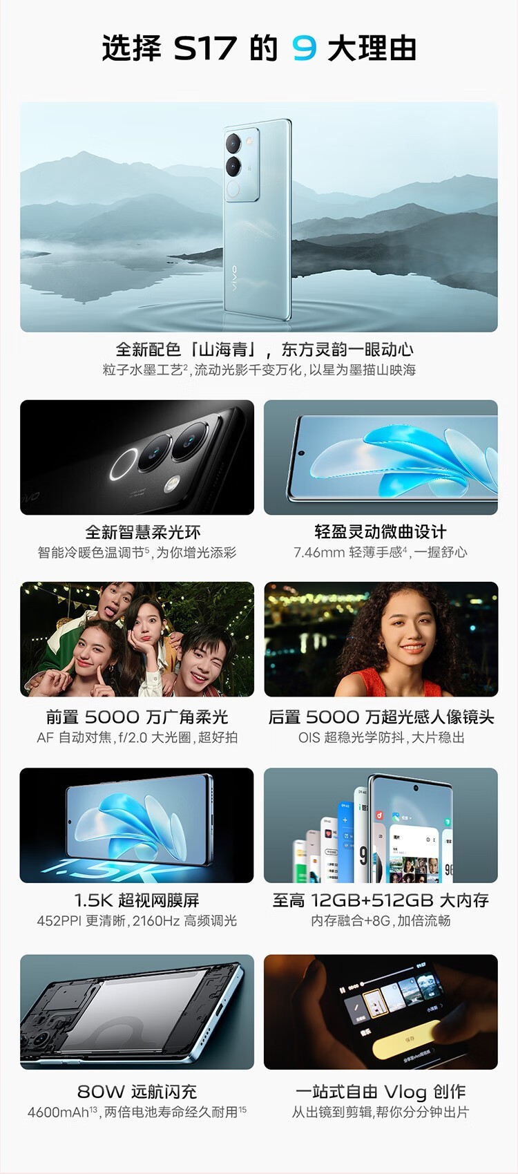 总结:性能配置尚可,影像算法调教出色,自拍效果好。机身轻薄,手感舒适。支持80W快充,电池容量也有提升。