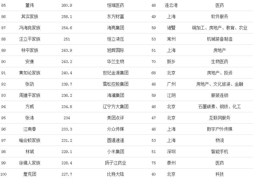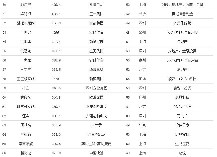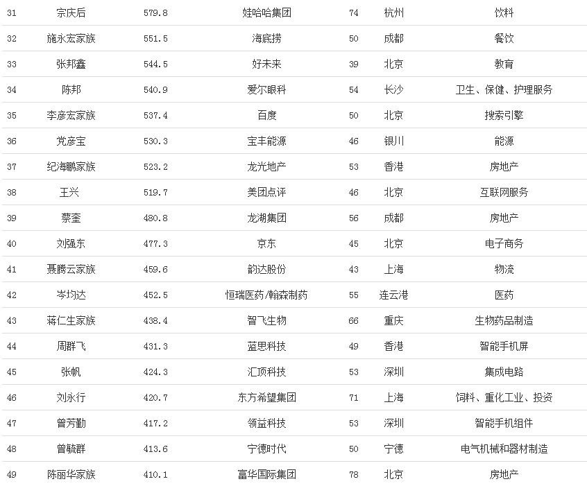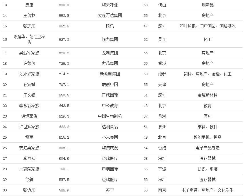 每年更新一次中国富豪排名(只包含大陆地区)。