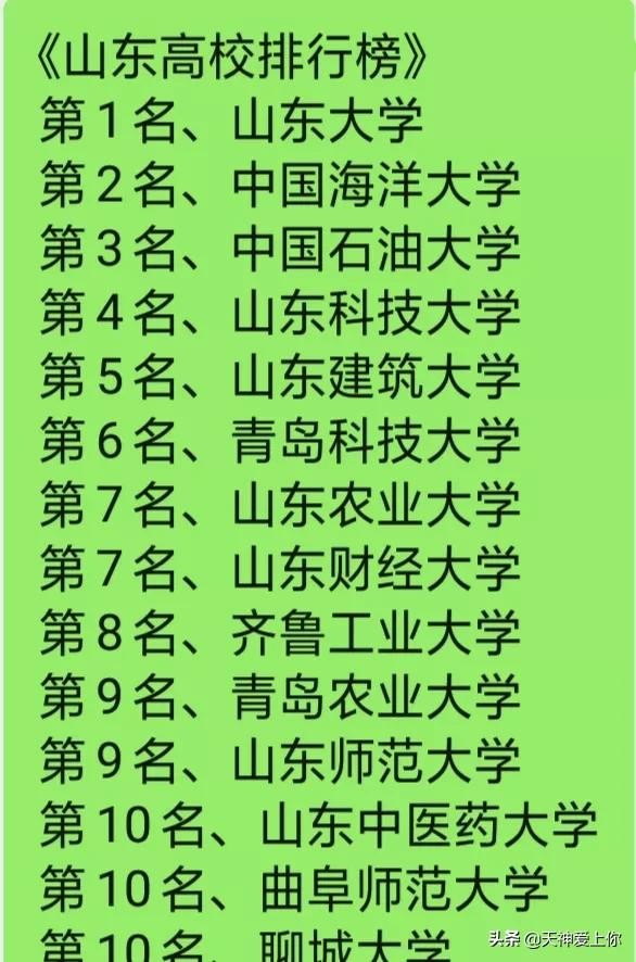 山东省部分高校排行榜: