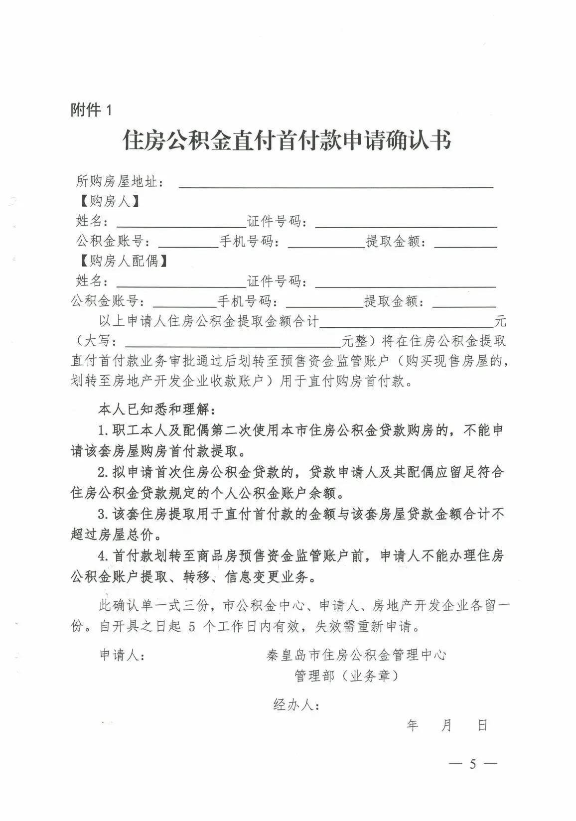 秦皇岛市住房公积金管理中心秦皇岛市住房和城乡建设局关于提取住房公积金直付首付款有关事项的通知