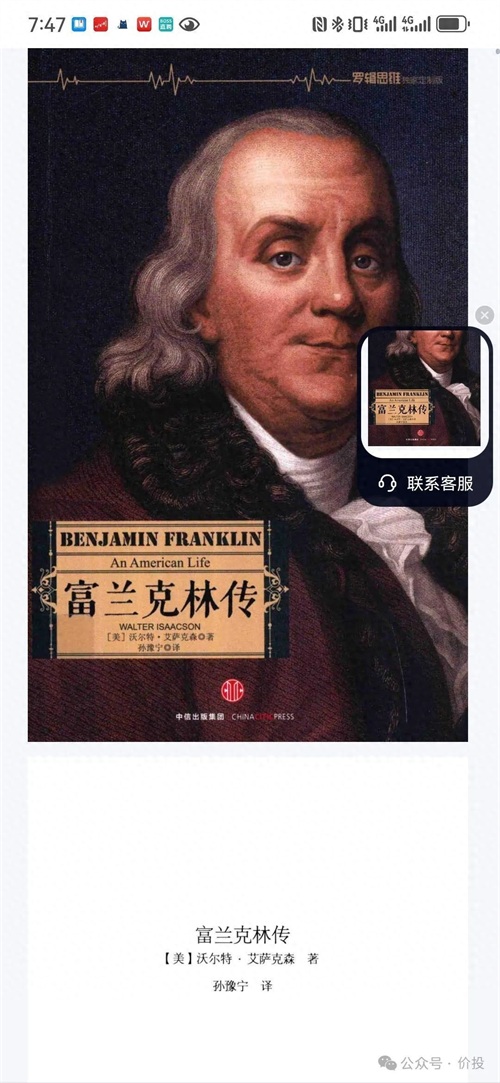 书籍分享:《富兰克林传》——开创美国精神的传奇人物