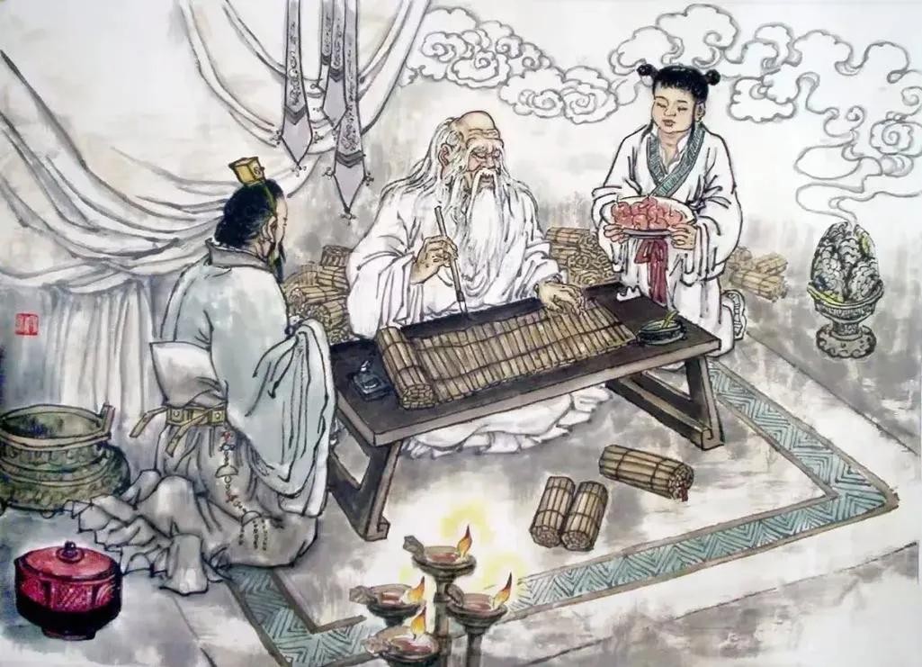 在年老时,老子选择隐退,骑上青牛,向西而去。传说他在函谷关遇到了守关的尹喜,尹喜请求他留下教诲,于是老子写下了《道德经》这部影响深远的经典。
