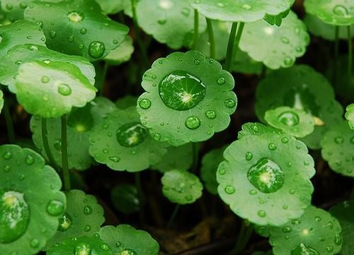 铜钱草以前可是稻田里的顽疾杂草,繁殖能力太快,很难清除干净,令很多农民头痛,不过,现在可是我们桌子上的小精灵喽。