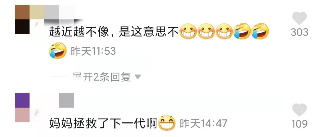 在评论区中有网友表示两个人不太相像;也有一些网友调侃道"妈妈拯救了下一代"。