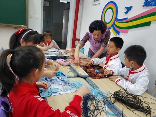 “线之舞”社团的孩子们在老师指导下进行创作。