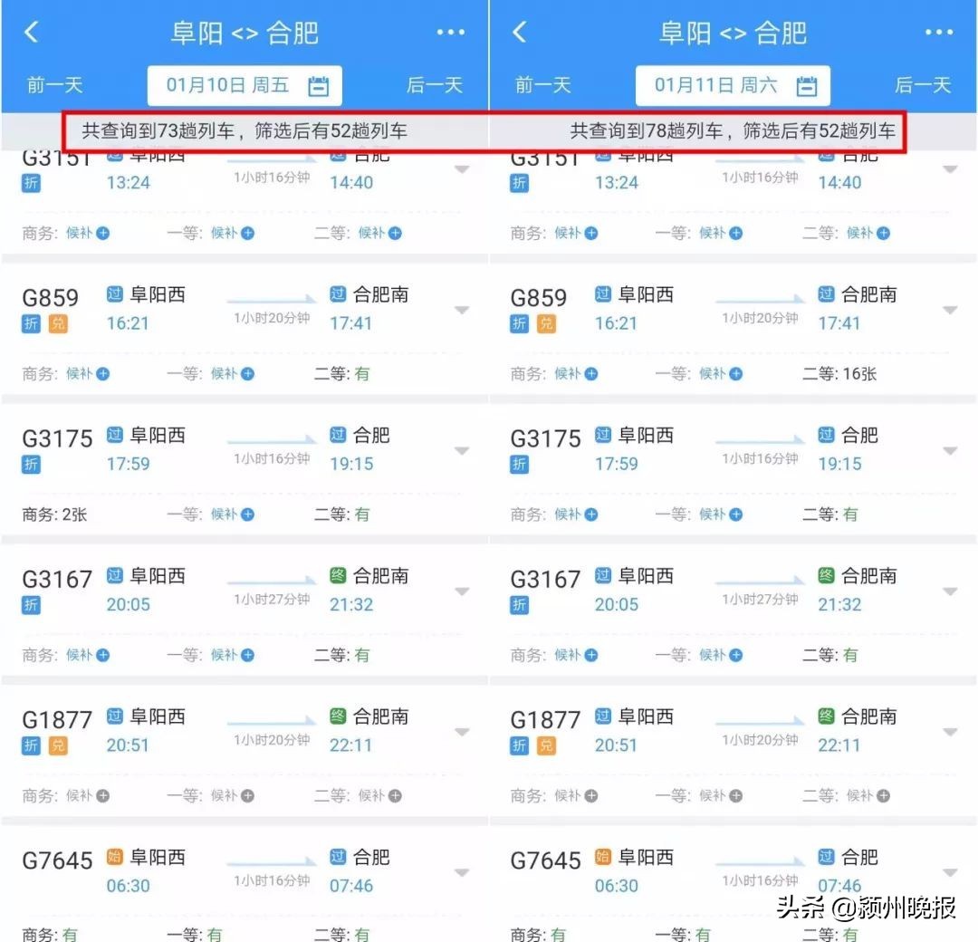 另外,春运期间阜阳站、阜阳西站都将加开多趟旅客列车,以阜阳到合肥为例
