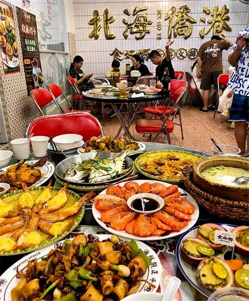 北海的美食给我留下了深刻的印象,尤其是海鲜,新鲜又美味。来到这里后,最常吃的就是各种海鲜,无论是螃蟹、虾、鱼还是贝类,都非常新鲜,价格也相对比北方便宜。餐馆里,你可以随便点一些海鲜炒饭、海鲜粥或者蒜蓉龙虾,吃上一口,鲜美的味道让人回味无穷。