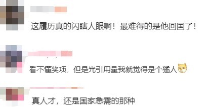 还有人说,这履历真的闪瞎人眼,最难得的是他回国了。