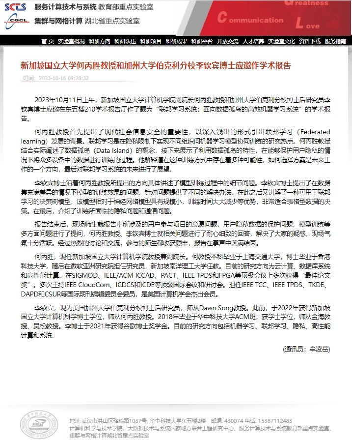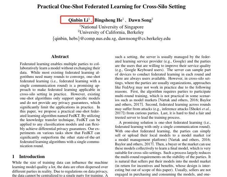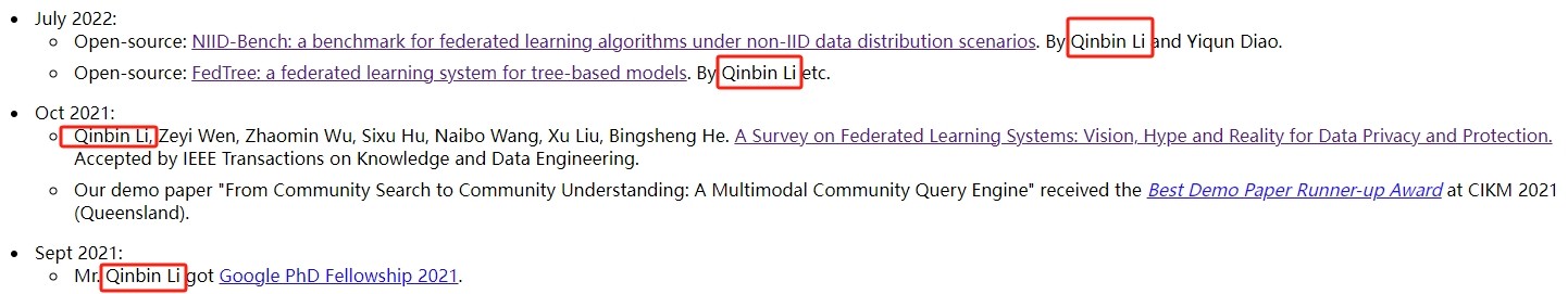 恩师何丙胜教授的个人主页显示,李钦宾学术能力出众,开源项目NIID-Bench和FedTree在业界广受好评。