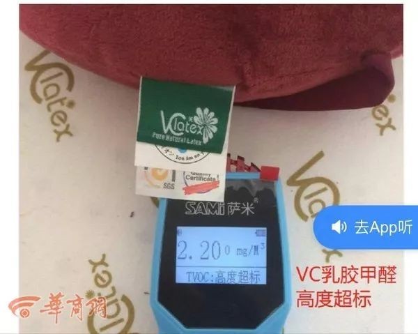 杨先生坦言,怀疑乳胶寝具有问题后,他自己找了个甲醛检测仪器做了好几次,受环境、甲醛检测仪器、检测方法等影响,甲醛的数据忽高忽低,“有几次是超标了,但也有几次是正常的,这个的最终结果需要权威机构鉴定。”