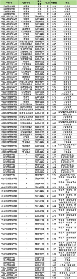 1、云南警官学院:2024最低分历史类528分、物理类515分;