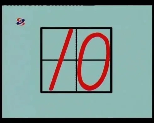“10”像粉笔和鸡蛋。“10”占两格,左边一格写“1”。右边一格画一格碰上、下、左、右四边线的椭圆。