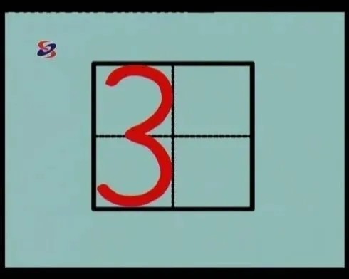 “3”像耳朵,起笔不碰线,向上碰线,再向下碰线,略成半圆向中间弯,在虚线以上转向右下方碰线,向下碰底线,最后,弯向上碰线。