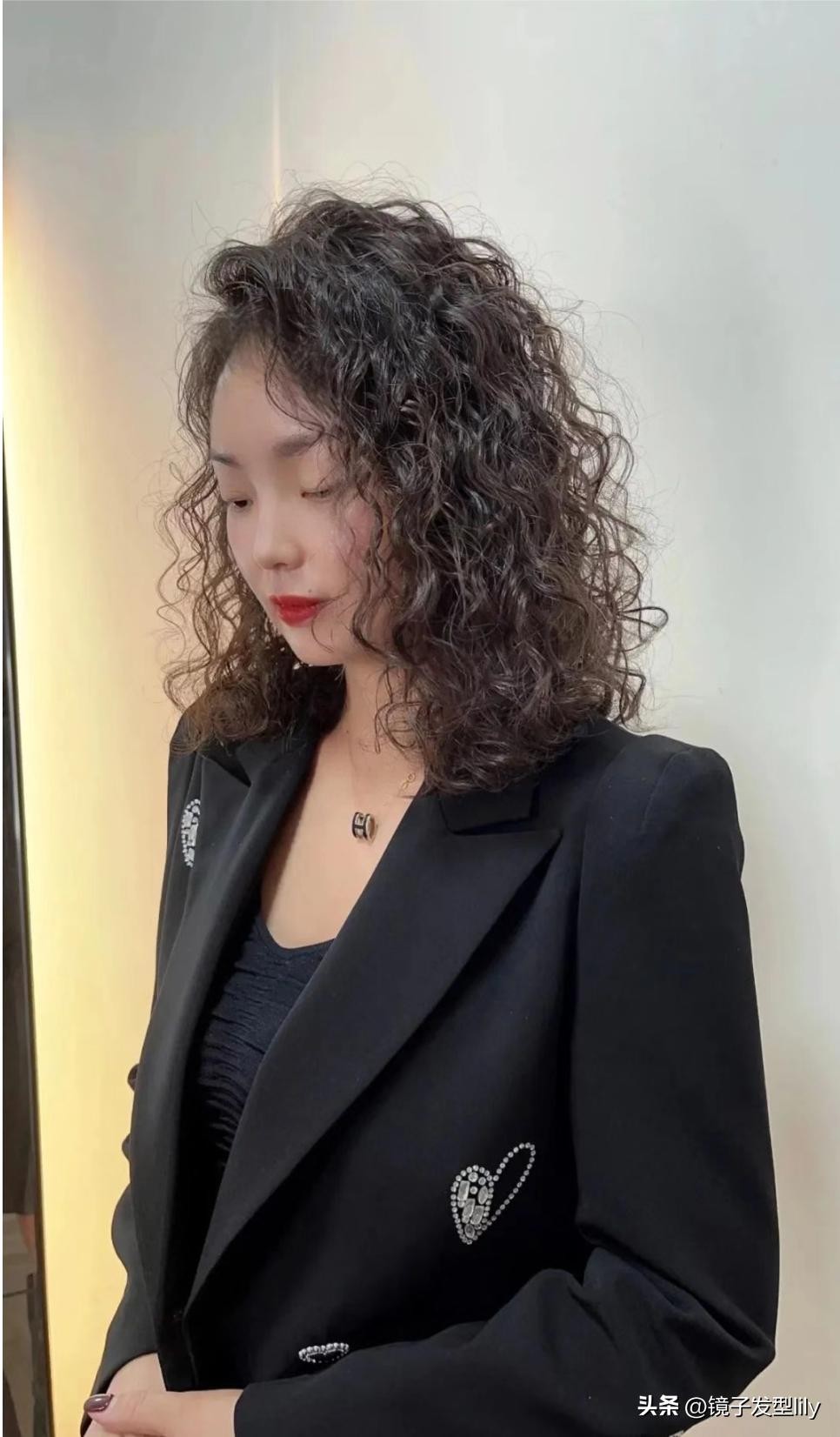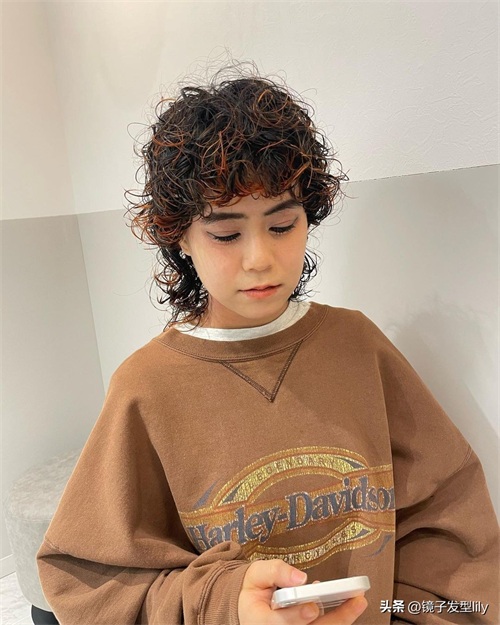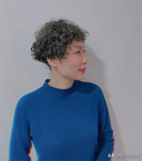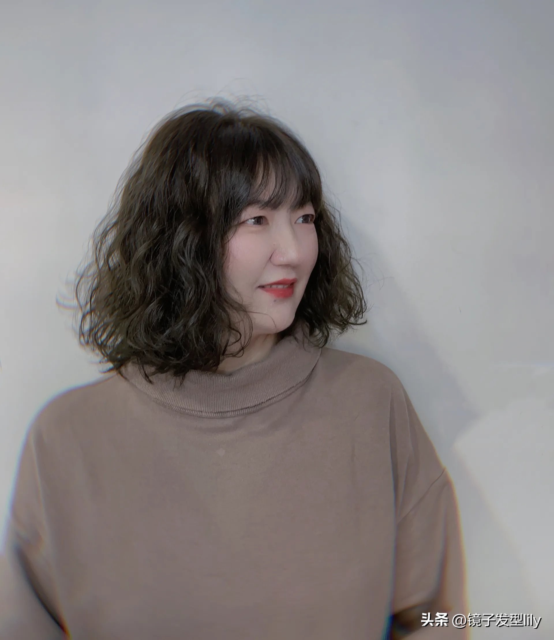满头小卷烫发,稍不留意,烫完也容易使人显老气,这时候可以考虑配上一个刘海,让整个发型就会拥有减龄好几岁的效果。