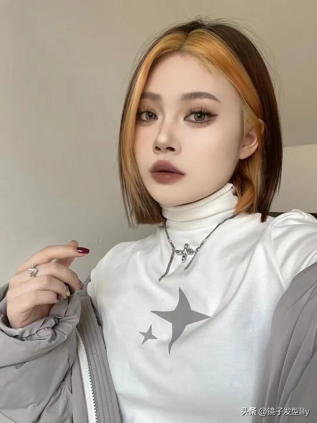 还有一种方式就是在发丝当中做一些亮色的挑染,来增加整个发型的立体感和独特性,效果也很是与众不同。