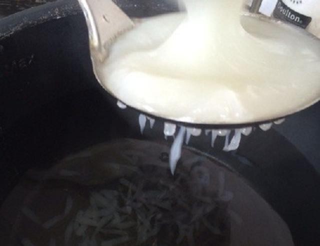 目标是:滑爽香软的凉虾。关键是:大米和石灰水的比例。