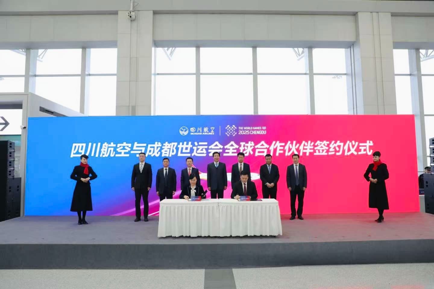 启动仪式上,川航还与2025年举办的第12届世界运动会(简称“世运会”)签署合作协议,正式成为世运会航空类全球合作伙伴。川航将推出两架“世运号”主题彩绘飞机担纲大赛“空中形象大使”,派出“川航世运礼仪”做好赛会服务保障。