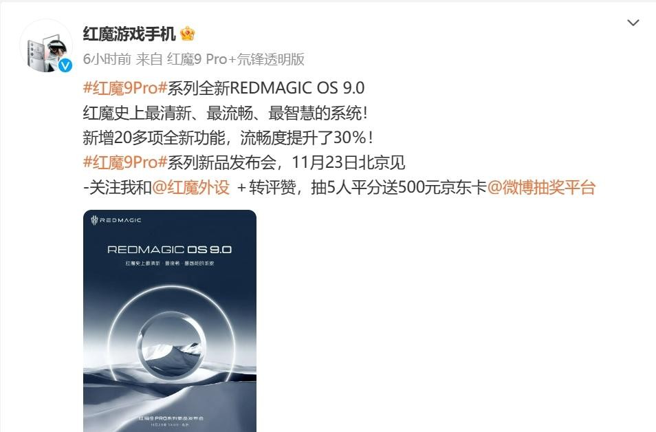今日,红魔游戏手机官方在最新的预热中提到,“红魔9 Pro系列全新REDMAGIC OS 9.0