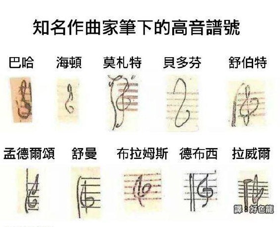 不管怎么说,贝多芬一生对音乐的贡献是无可替代的,如果非要给他一个江湖地位,那也绝对是“老战士”“大哥”之类响当当的名号。瞧瞧这几位钢琴大师们都怎么书写高音符号的,显然,贝老爷子他根本不在乎!