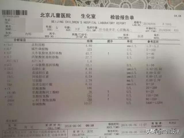 ▵ 田淑平提供的图片显示其孩子被诊断为心肌损害。