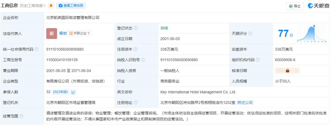 值得注意的是,在该地块全力施工的同时,其酒店管理服务招标早已完成,中标者为北京凯燕国际饭店管理有限公司(以下简称北京凯燕)。