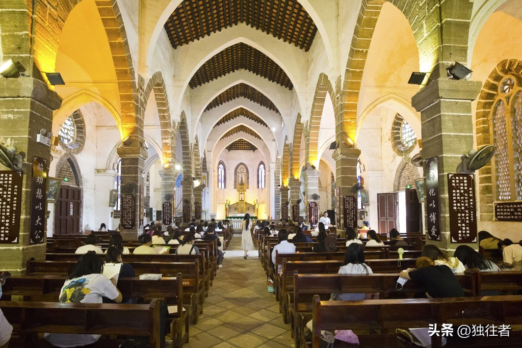 我去过欧洲一些地方,在欧洲有很多教堂,尤其是意大利,教堂随处可见,在那里最壮观、最豪华、最有气势的建筑非教堂莫属,我不信教,但对这些独具特色的建筑深感震惊,走进教堂会有一种神秘感,对教堂里的内部装饰令人好奇。来涠洲岛当然要去这座广西沿海地区最大的天主教堂看看。别看涠洲岛面积不大,但是却有两座著名的教堂——天主堂和圣母堂,其中最有名的就是这座天主教堂。在去教堂前,我们先来了解一下盛塘天主教堂的前世今生。