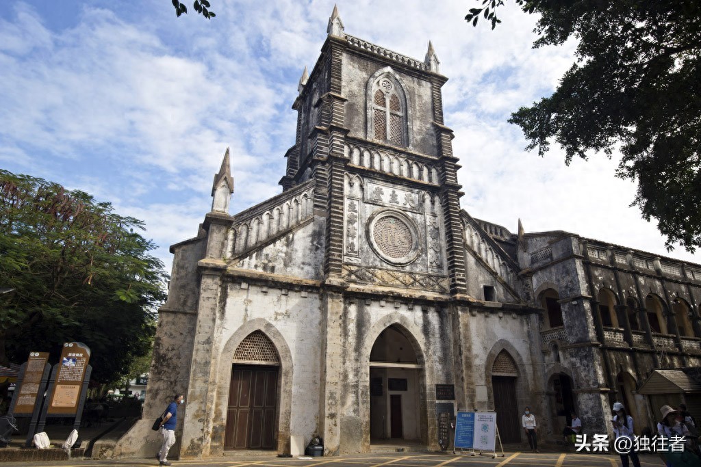 广西北海涠洲岛不仅仅拥有海岛的碧海蓝天,风光旖旎的自然景观,而且这里还有着深厚的人文历史、多样的信仰文化和极具当地特色的建筑群。其中,岛上百年天主教堂就是涠洲岛历史长河中一枚闪耀的瑰宝,这座享有东方“巴黎圣母院”美誉的天主教堂,是“晚清四大天主教堂”之一,是涠洲岛最著名的人文地标,已被列为全国重点文物保护单位,是打卡涠洲岛必去景点之一。涠洲岛的天主教堂,位于涠洲岛最大的村子——盛塘村(原名“圣堂村”),因此也称为“盛塘天主教堂”。
