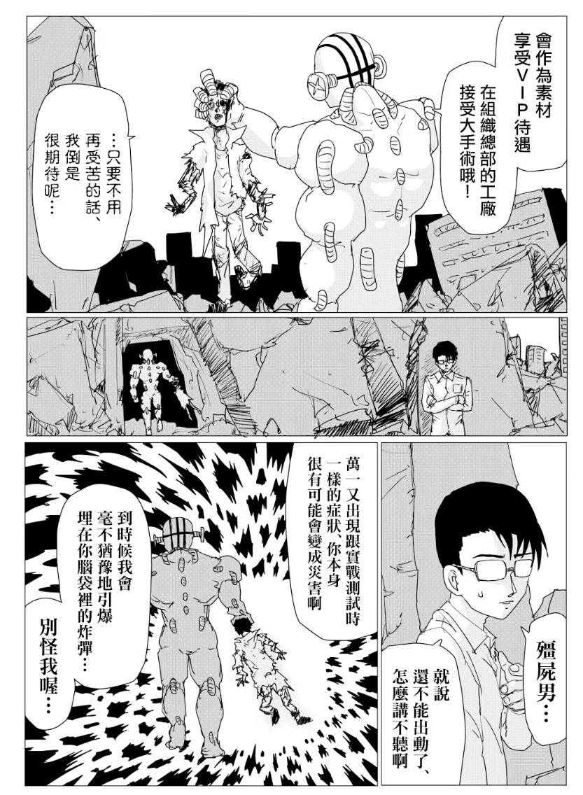 僵尸男也会被作为素材接受改造成为战斗机器,看到这一幕我们都以为僵尸男败了。但实际上这是僵尸男和基诺斯博士的计谋,之前僵尸男就和基诺斯博士去了地下室,寻求限制器的突破,这里僵尸男被击败基诺斯博士都没有出手就表明了他们有更大的计划,那就是僵尸男到达他们的老巢之后在行动。