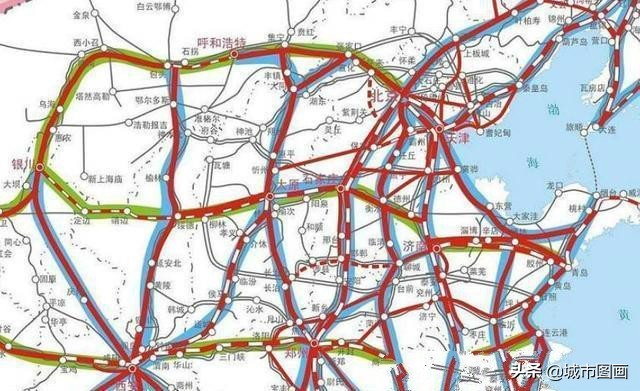 华北的核心,无疑还是 北京、天津。京津成为连接东北和华北的两条通道。青岛、济南、石家庄、太原、呼和浩特、沈阳通过高铁拱卫京津。