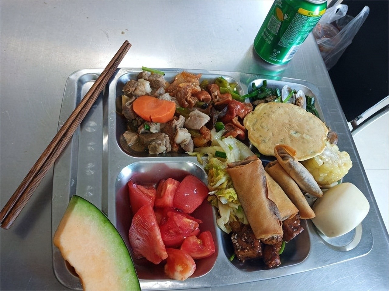 美国在军队饮食上花费高昂的传统早就有了,在二战时期,很多国家都还在饿着肚子打仗时,美国就已经能吃上午餐肉喝上可乐了。二战结束后,美军的伙食也是越来越好,直到现在,一顿饭都有上百道菜品,想吃多少拿多少,还提供免费的啤酒。