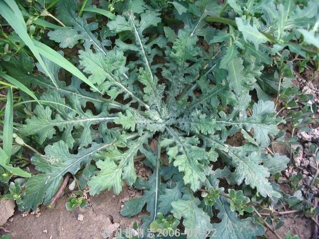 这个野菜的根有点肉质状,还挺长;叶子有点像羽毛,也有点像小提琴,但是一般都是深裂的。叶子颜色是上面绿色,下面白色。泥胡菜要5月份以后才开花,开的花是紫红色,所以现在这个时节,大家只能采到泥胡菜的初生叶,一般都是贴着地生长的,呈莲座状。
