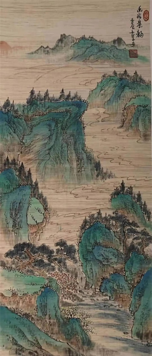 叶阿林老师擅长山水人物,亦能花鸟鱼虫。其创作往往将青绿工笔与水墨笔融为一体,立意新奇,融汇中西,追求创新而不失本然。