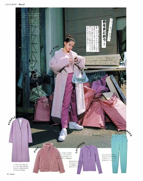 淡淡的紫色系和梅子色结合在一起也是非常出众的,有一种邻家女孩的效果,这一身的搭配也是没有年龄限制的。