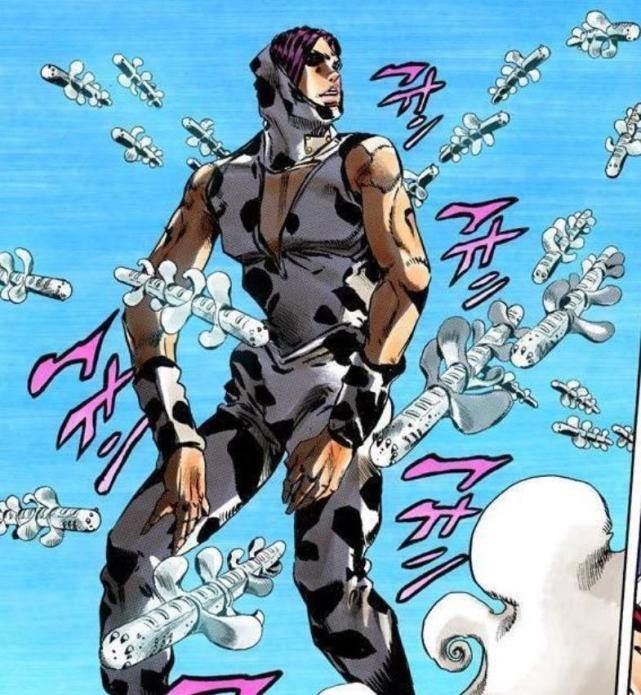乔鲁诺·乔巴纳是第一个出现的DIO孩子,是第五部黄金之风的主角,一开始他的替身黄金体验可以赋予死物生命,攻击这些制造出现的生物还会引起百分百反伤效果,茸茸用这个技能击败了不少的对手,黄金体验还可以做一个奶妈,给队友提供身体部件,帮助队友修复身体。
