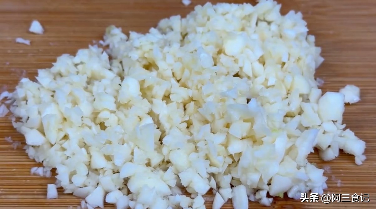 第五步,准备配料。先准备两三头大蒜,将蒜瓣全部掰下来,剥掉所有的蒜皮。然后我们把每一个大蒜先拍扁,再用刀将它们切碎,反复多切几次,我们就得到了很多的蒜末子。然后我们再取出一大块生姜,把它表皮清洗干净之后,先切成姜片,再切成姜丝儿,最后把它们切成姜末,和大蒜放在一起待用。