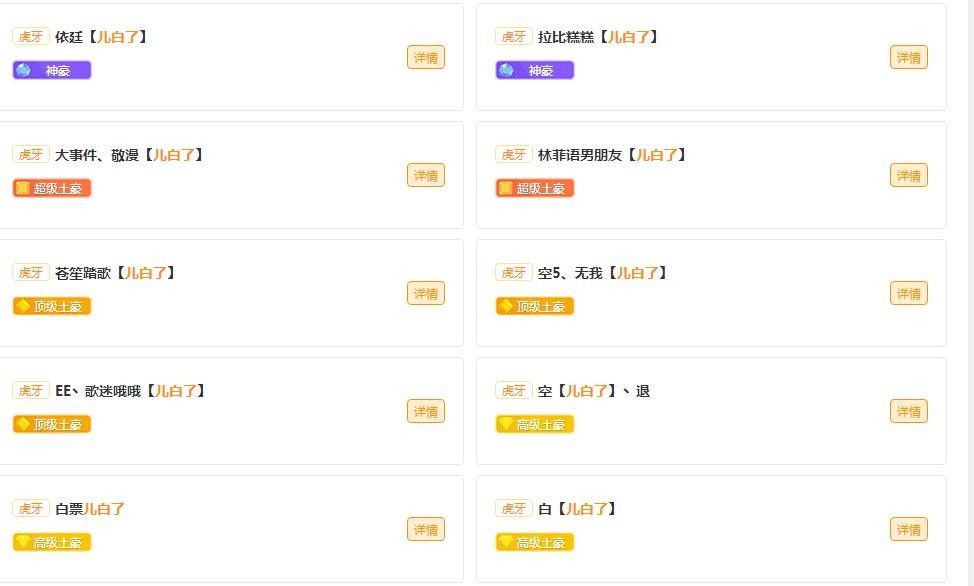 那么现在,虎牙上的消费财团,都有哪些?以及实力排名。