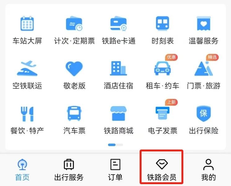 点击“铁路会员”