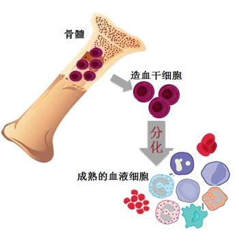 造血干细胞主要储存于人体的骨髓腔中,是人体内最独特的体细胞群,它能自我更新,有较强分化发育和再生能力,可以产生白细胞、红细胞,血小板等血液细胞。