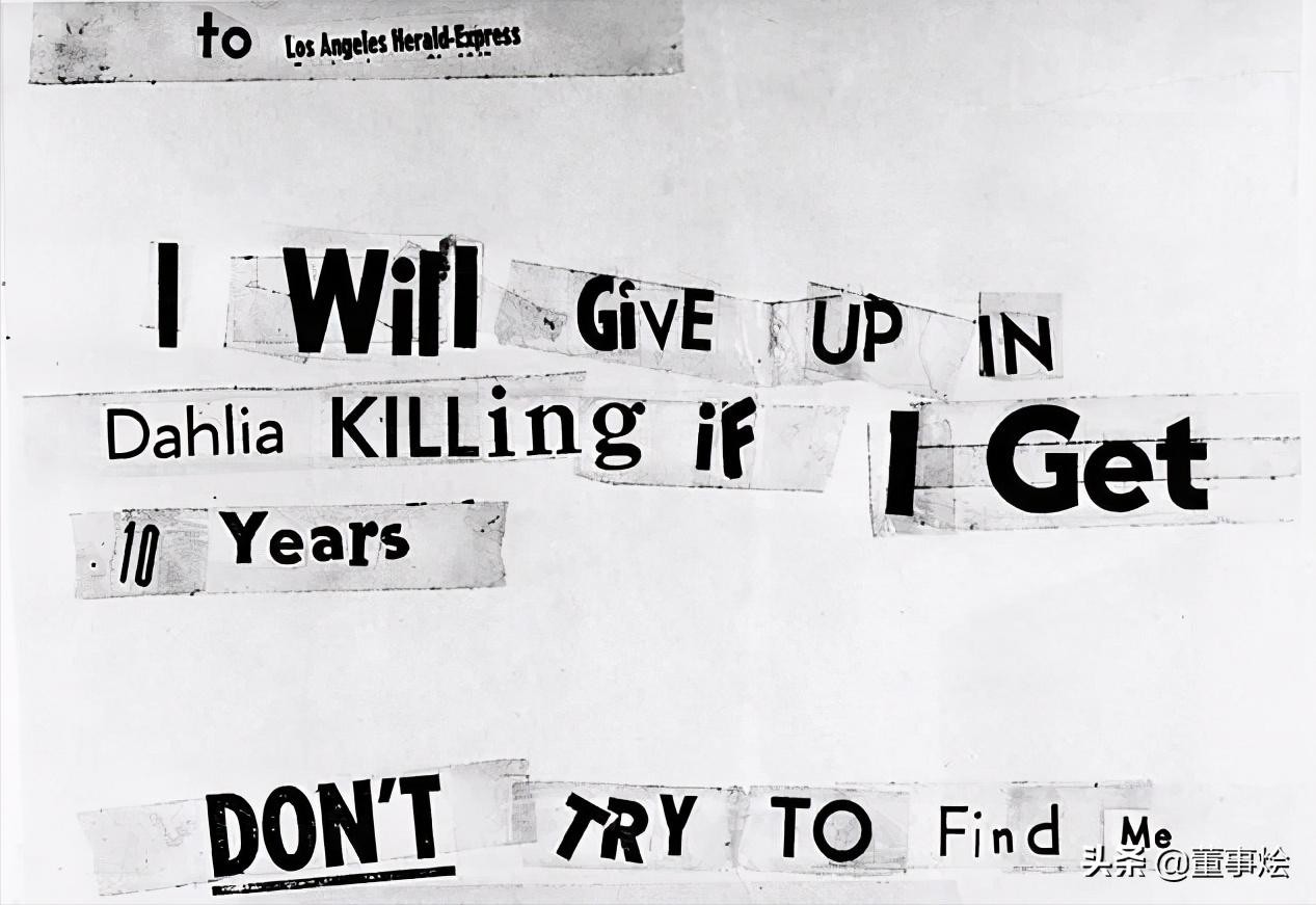 1947年1月28日,一封短信被寄送到警署,这回是用手写的几句话:“周三,1月29日上午10点是转折点,(我)要在警察那里寻开心。”落款是“黑色大丽花复仇者”,很多人依据该信笺的内容推测凶手很可能将要在上述时间自首。凶手并未如“约”自首,而且马上又寄给警方一张剪接加手写修改的信笺,上面说:“(我)改变主意了,你们不会和我公平交易的,大丽花的死是合理的。”