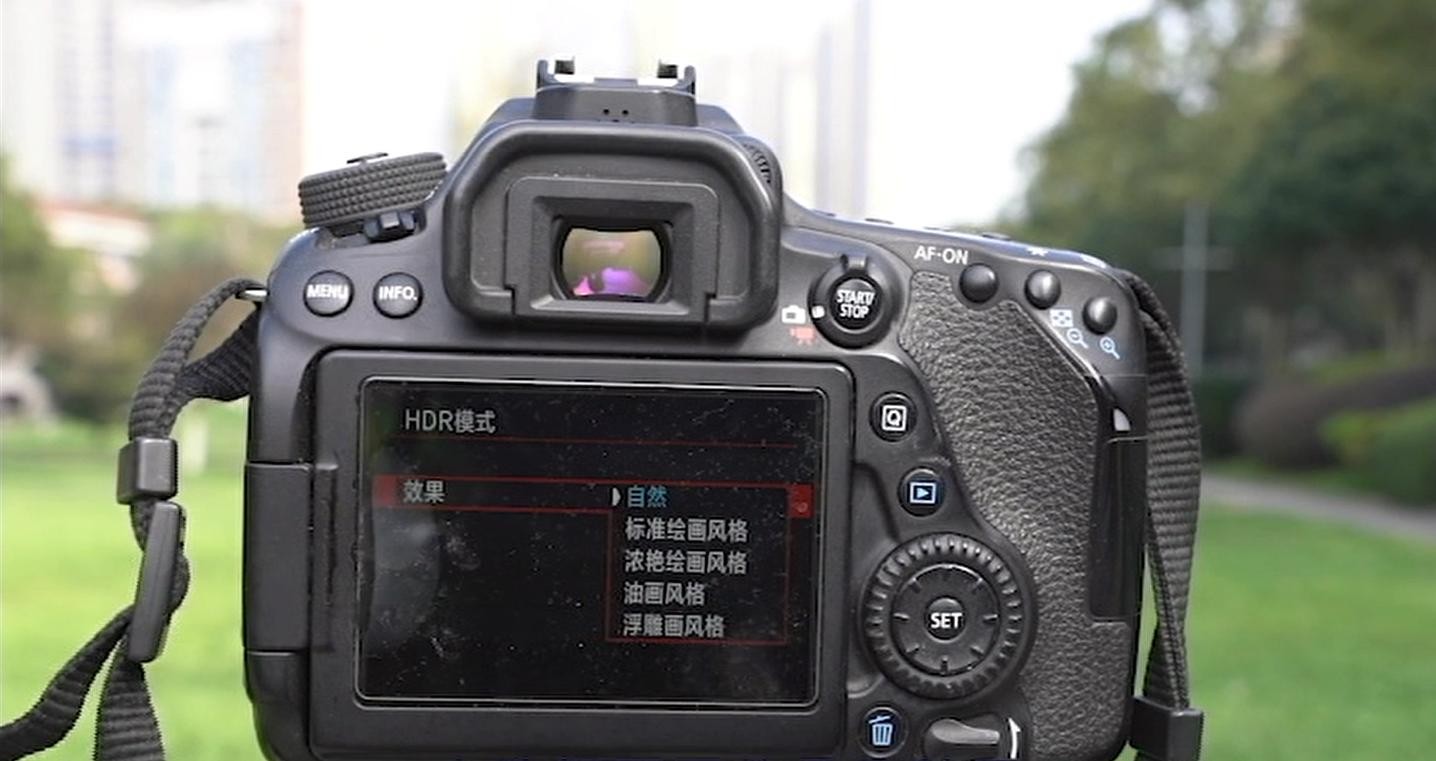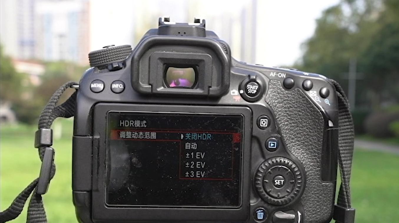 相机里还有一种拍摄也是属于包围曝光,就是相机里的HDR拍摄。HDR又称高动态范围成像,HDR很多功能都是相机自动设置的,不需要人为去调整。在相机上找到HDR这个功能。里面也有一些调整参数,第一个是调整动态范围,里面有自动加减曝光、加减1档曝光、加减2档曝光、加减3档曝光。